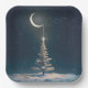 Glowing star hanging from a crescent winter moon for a Christmas tree.