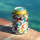 This can cooler has a mid-century modern design of crescents in retro colours. Want the same design with different colours? Message me.