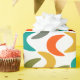This wrapping paper has a mid-century modern design of crescents in retro colours. Want the same design with different colours? Message me.