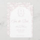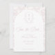 Blush Pink Monogram Crest Wedding Save The Date: Vintage-inspired line art monogram crest with elegant pale pink typography. Features a chinoiserie floral pattern in the shape of an arch and on the reverse for timeless sophistication. Elegant script font for a formal and classic style.