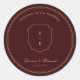 Crest Monogram Burgundy & Gold Wedding Welcome Classic Round Sticker