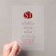 A crest monogram acrylic wedding invitation with a minimalist design. Ready to check invitations off your to do list? Add your text, add this invitation to your cart, and a have a wonderful wedding.