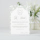 Sage Green Monogram Crest Wedding Details card: Vintage-inspired line art monogram crest with elegant sage green typography. Features a chinoiserie floral pattern in the shape of an arch and on the reverse for timeless sophistication. Elegant script font for a formal and classic style. Add your own webside with a custom QR code on the reverse or simply delete it for a more traditional card.
