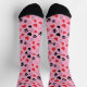 These adorable and vibrant socks are perfect for any dog or cat lover! They feature a charming, all-over seamless pattern of black paw prints and a mix of red and black hearts on a crisp white background. The design is cheerful and makes a wonderful gift for pet parents, vets, or anyone who cherishes their furry friends. With black toes and heels for a sporty contrast, these comfortable, mid-calf socks are great for everyday wear, adding a touch of pet-loving flair to any outfit. Show off your love for animals with every step you take!