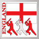 Three Silhouetted cricket players in front of the English Flag with the country name England on the side.