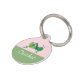 This pet ID tag features a cheerful green cricket set against a soft pink and sage green background, complementing the playful nature of the tag. The area for personalizing is clearly designated, ready to be customized with a pet's name in a flowing, easy-to-read font. The tag blends lighthearted charm with practicality, ensuring that a pet can be identified in style.