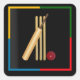 Cricket, wicket, bat and ball, square sticker