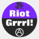 rose noir, cercle-a, "anti-émeute grrl! autocollant rond, violet & noir