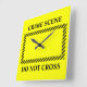 Yellow crime scene tape and text.