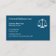 Simple criminal defense Lawyer business card with scale of justice symbol you can replace with your own business logo or graphic and simple legal themed layout you can customize online. Designed for Lawyers that practice in the field of criminal law, criminal defense, or a bail bondsman.