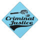 Modern typography includes a swoosh element. Criminal Justice features a magnify glass and a fingerprint. Background colour can be changed to colour of your choice. Criminal Justice graduation cap topper will help you stand out in the crowd.