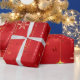 Wrap your gift in this beautiful crimson chili red colour with golden ornaments, snowflakes and curly ribbon.