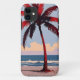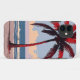 A bold and artistic palm tree with deep red hues stands tall on a tranquil beach. The ocean waves gently kiss the shore, while soft clouds float in the sky. A perfect blend of tropical serenity and modern aesthetics.
