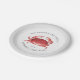 Personalized grey and white Crab themed food paper plates for your next Crimson Crab Party or seafood event. It features a watercolor styled illustration of a crimson red crab. Surrounding this are spots for your unique event information on this tableware.