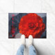 This custom doormat features an image of the veiny leaves and large, crimson-coloured bloom of a Double Begonia plant. The image was digitally altered with selective colouring to reveal only the red in the image. "Welcome" is added in large, easy-to-read lettering. The mat measures 24" x 36", and it has a smooth felt front & nonslip latex back. It also has a reinforced edge to resist fraying, is both fade & mildew resistant, and cleans easily with a spray of water. Ideal for covered entryways such as porches, apartments, offices, condos, etc. Feel free to contact me through Zazzle if you have questions about this mat or would like help transferring this design to a different item. I'm happy to help to ensure the image and lettering fit correctly.