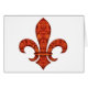 "Crimson Garden", a unique "Fleur de lis" design with a red tapestry print for one-of-a-kind apparel, t-shirts, chef's apron caps, tote bags, cards, postage stamps and gifts. Add your own text for a truely custom designed gift for a birthday, wedding, anniversary or special occasion.