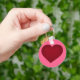 This keychain features a shapely crimson heart on a pink background. Personalize as a party favour for weddings, bridal showers, engagement parties. Also makes a cute Valentine's Day gift.
