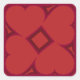 This sticker features four crimson hearts surrounding a central crimson diamond on a burgundy background.