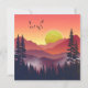 An abstract landscape of a mountain scene with a sunrise and trees in bold shades of crimson and red.