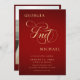 Crimson Red & Gold Script Modern Photo Wedding Invitation