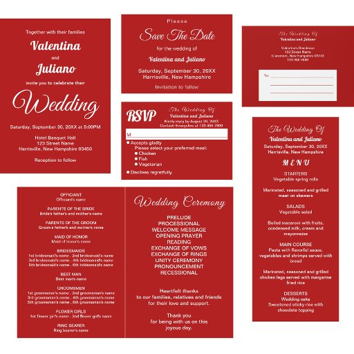 Provide the details of your wedding reception to your guests with this plain text on a solid crimson red background enclosure card, a colour to celebrate love and sophistication. A simple design for couples or hosts who prefer plain text without any things in the background. Texts are centre aligned and combination of calligraphy and script fonts to enhance the style and sans serif font to enhance readability. The white text contrasting on the solid crimson red background also enhances readability and clarity. Customize it by typing the names of the bride and groom and reception details. Please check the appearance of the front and back sides after typing texts. If the appearance is pleasing to you, you can place place your order now. If you need to resize and reposition the texts to fit on this enclosure card or on the size that you will choose, please adjust in the design tool. You can also change the font style, font colour and background colour in the design tool. Congratulations on your engagement! Wishing you a lifetime filled with love and happiness.