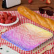 Wrinkled paper with gradient rainbow design.