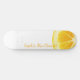 Crisp, minimal design centering on a slice of lemon citrus fruit. This image is in yellow, orange and white colors. There is custom text in script style writing, for a name perhaps other text if preferred.