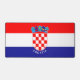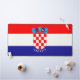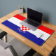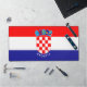 This desk mat features the flag of Croatia with a coat of arms and customizable curved text "Croatia" in a white font at the bottom. Personalize it with your name or text.