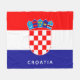 This fleece blanket features the flag of Croatia with the coat of arms and customizable text that reads "Croatia" in white font placed on a blue stripe. Personalize it with your name or text, or you can delete it.