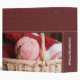 A great 2" binder for the person who loves needlework. Perfect for organizing patterns and project ideas. Design features basket with yarn and crochet needs with a different, but similar themed image on the back. Border is maroon with leather-like texture look and stitching.