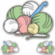 Vector image of a crochet hook in a pile of yarn, including a large version and two small versions so that you can decorate multiple surfaces