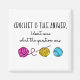 If you love to crochet, then crocheting is always your answer, no matter what the question was. Huh? Well, you understand if you're a crocheter. Here's a cute design featuring the trending quote in fun typography and drawings of three colorful balls of yarn, with a crochet hook poking out of one.