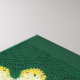 Crochet pattern of daisy in yellows, grey and hunter green.