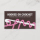 Crochet hook with looping yarn in pink and brown for crafters or crafting business cards or makes a nifty gift tag for crafters who love to give handmade goodies to friends and family. Set includes business cards, gift tags to tape or punch and string, and gift tags stickers or package labels.