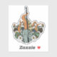 Fun hand drawn art of an octopus holding a crochet hook, surrounded by balls of yarn. A perfect sticker for anyone who loves crochet...and sea creatures.