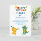 Make a splash at your boy's 6th birthday with this hilarious cartoon invitation! Featuring a dancing crocodile and hippo in party hats, this vibrant 5x7 card brings maximum fun with its rainbow "Happy Birthday" text and bright color scheme. Perfect for creating an unforgettable celebration atmosphere!