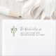 Ces belles étiquettes d'adresse de retour sont dotées d'une croix bleu clair avec de l'ivoire d'aquarelle et des fleurs blanches, et sont parfaites comme une touche supplémentaire pour vos invitations au baptême.
