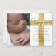Invitez vos amis et votre famille au baptême de votre fils ou de votre fille avec ces invitations photo modernes. Les cartes présentent l'une de vos photos préférées, une croix dorée et un modèle d'invitation moderne facile à personnaliser. Les styles de police peuvent être modifiés en cliquant sur le lien de personnalisation supplémentaire après la personnalisation.