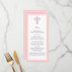 Une croix élégante conçue avec les boucles et la fancy fleur de lis de tourbillonnement modèle, coordonne parfaitement avec nos invitations de baptême, de communion et de confirmation. Chaque ligne peut être customisée pour votre menu. La conception croisée assez rose est disponible dans les autocollants et l'affranchissement assortis aussi bien.