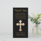 Le noir simple et la cérémonie commémorative religieuse d'or vous remercient de carder l'arrière - plan solide dans le noir avec un aluminium de faux, croix religieuse de sembler métallique. Lit le "Merci" dans la couleur d'or avec un message de gratitude ci-dessous en or assorti. Ajoutez vos propres mots des mercis si vous souhaitez. Le fond lit "de la famille de" avec le nom personnalisé dans la couleur d'or. La belle manière d'exprimer remercient vous et la gratitude aux amis, aux collègues, et aimé.