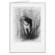 Un beau croquis de fusain d'un tigre dans la longue herbe. Noir et blanc.
