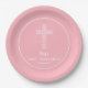 Cross | Baby Pink Communion Baptism Christening Paper Plate