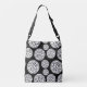 This lovely cross-body bag is shown in a black and white dots print.