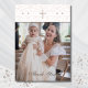 Personalize this Christian baptism photo thank you card to create a meaningful keepsake for your little one’s special day. The front features a cross in elegant soft beige pearl graphics, complemented by delicate white lace and pearl details against a soft pink-beige background. A designated space allows you to add a photo for a personal touch, making it uniquely yours. The back provides ample room for a personalized thank you message, letting you express gratitude in your own words. With a minimalist and vintage look, this card is perfect for christenings, simple baby dedications, and baptism celebrations. Mocha brown colored typography and a graceful script font completes the design, adding a timeless, elegant touch. A heartfelt, faith-filled thank you card your guests will cherish forever. Be sure to see the collection for matching items to complete your coordinated look.