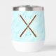 Crossed wooden cross-country skis and ski poles superimposed on a snowy background image. Customize by adding your own text on the reverse side. You may easily remove the stripes if you wish.