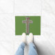 This cross door mat features a green background, providing a clean and simple aesthetic that complements various entryways. Its design not only enhances the visual appeal of your home but also serves a practical purpose by keeping dirt and debris at bay. Ideal for both indoor and outdoor use, this mat combines functionality with style, making it a perfect addition to any entrance.
