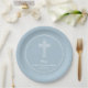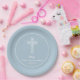 Cross on Steel Blue Communion Baptism Christening Paper Plate
