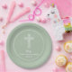 Cross Sage Green Communion Baptism Christening Paper Plate