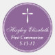 This design features a circle frame, white lettering, and a bold white cross, perfect for any religious event. Use as a favour tag or envelope seal.