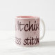 "Itchin´ to be Cross Stitchin´!" A stitching frame with a half ready heart stitched on a piece of pink material and a silly joke for cross stitchers. The perfect design for any yarnoholic!